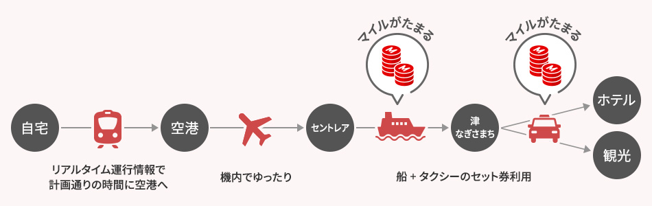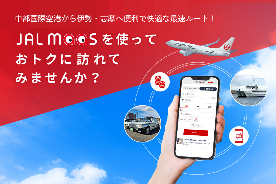 JAL MaaSを利用することで、中部国際空港(セントレア)~津なぎさまち港~志摩市間をスムーズに移動できるデジタルチケットが販売されます。