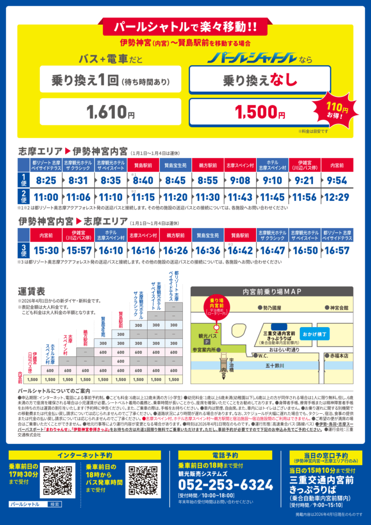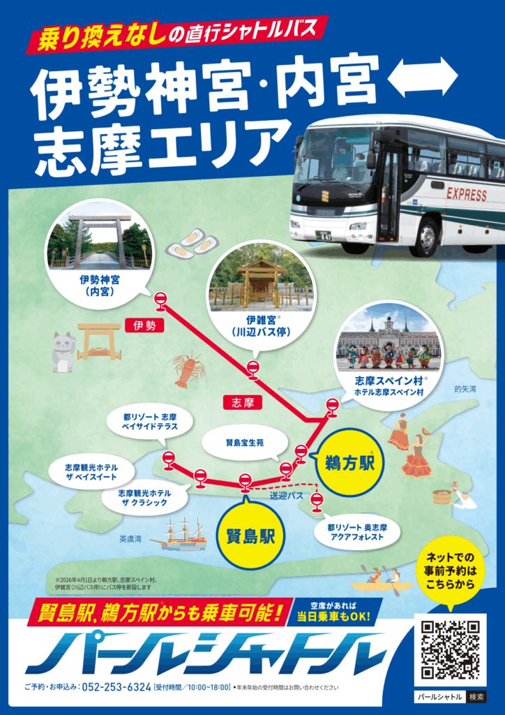 2026年4月1日(水)より、伊勢神宮(内宮)と志摩エリアを乗り換えなしで結ぶ直行シャトルバス「パールシャトル」 がますます便利になります。