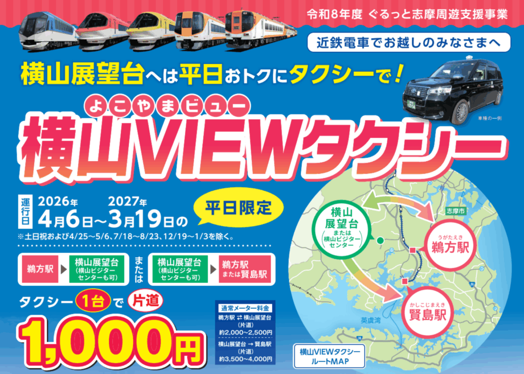 横山展望台へお得に行ける、「横山VIEWタクシー」を今年度も運行します!
