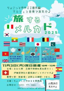 2025年11月3日(月)、伊雑宮神社手前にある「おみた館」にて、ちょこっと市ゆるる番外編『旅するメルカド 2025』が開催されます。