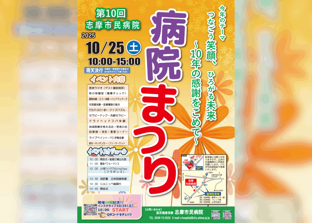 2025年10月25日(土)、国民健康保険 志摩市民病院にて『第10回 病院まつり』が開催されます。