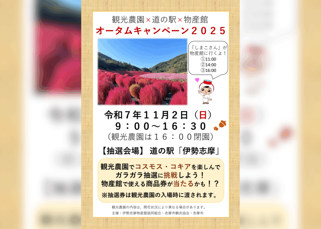 2025年11月2日(日)に志摩市観光農園に入園いただくとガラガラ抽選に参加できます!