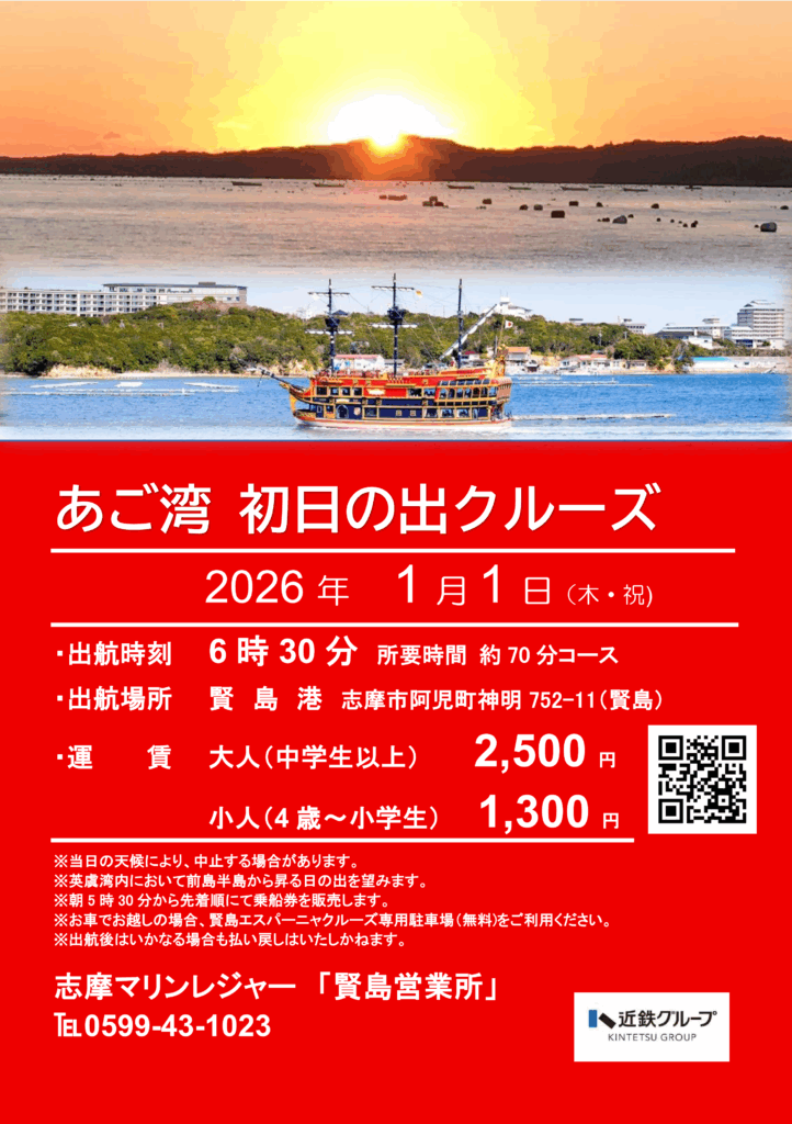 元日恒例の人気クルーズ『あご湾初日の出クルーズ』が今年も開催されます。