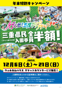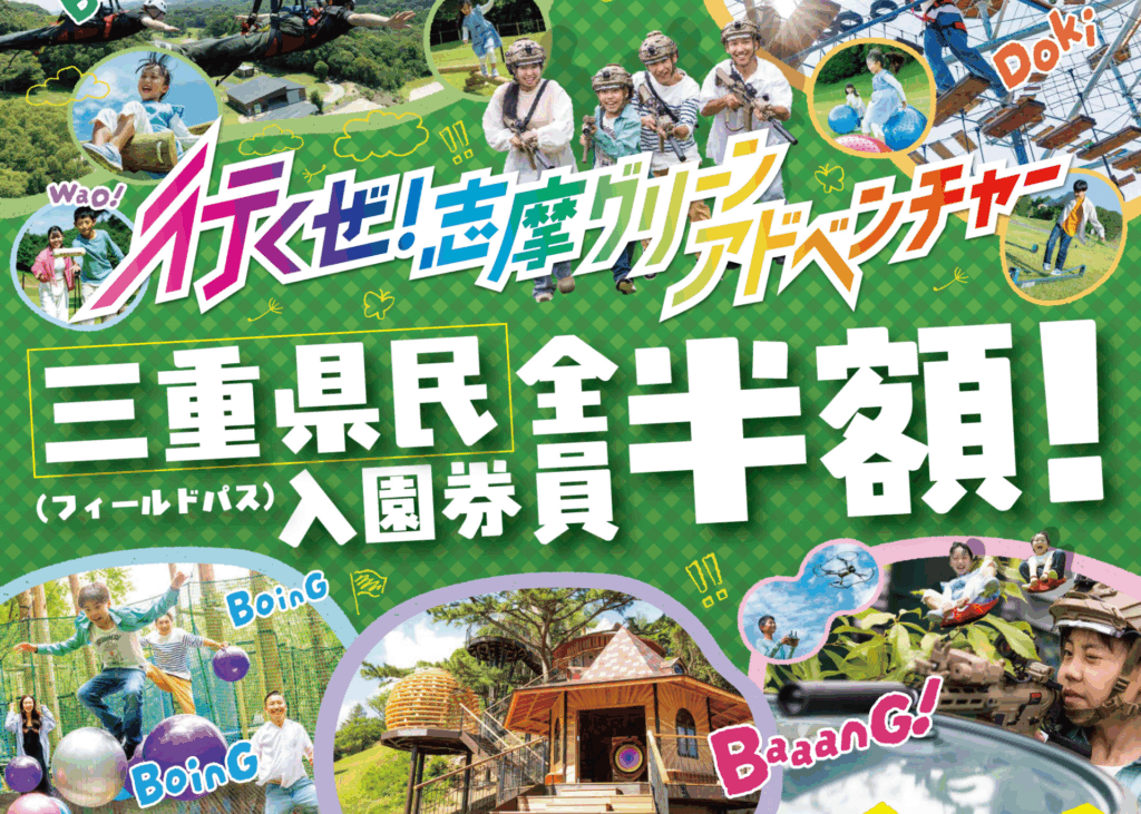 志摩グリーンアドベンチャーでは、三重県にお住まいの方を対象に、フィールドパス(入園券)が半額になる特別キャンペーンを開催しています!