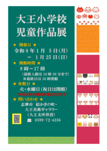 絵描かきの町・大王美術ギャラリーにて2026年1月5日(月)~1月25日(日)の間、「大王小学校 児童作品展」が開催されます。