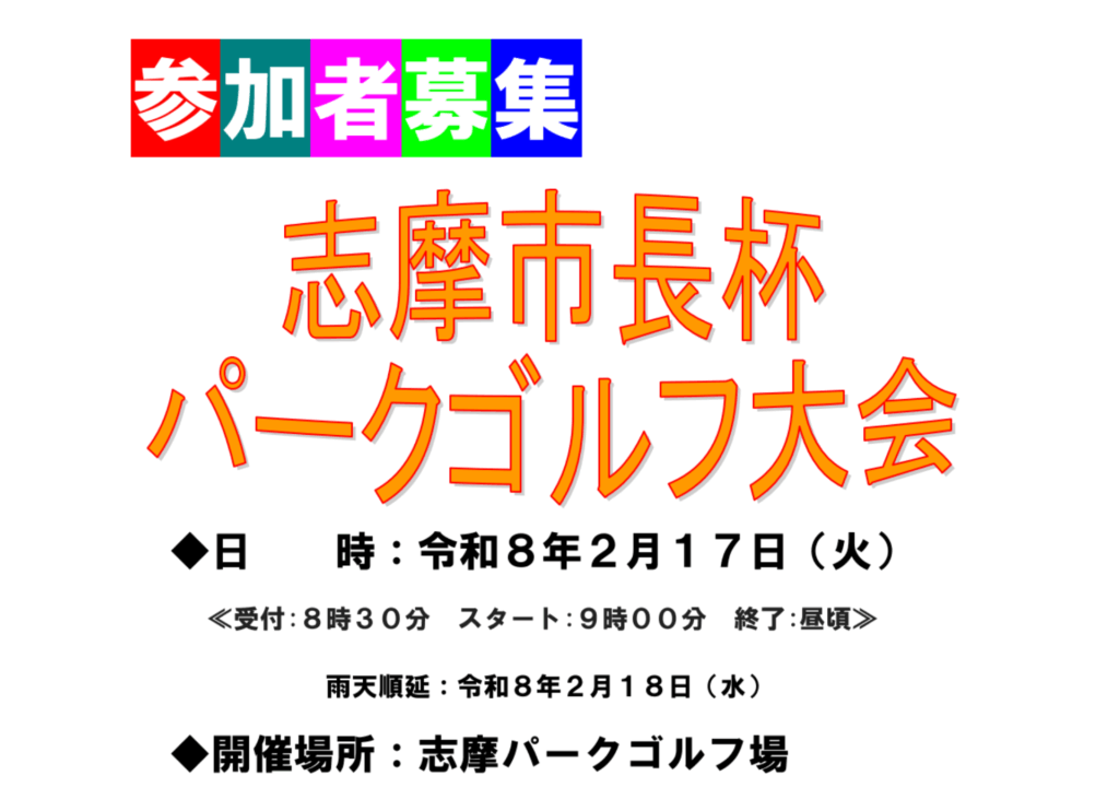 申込締切:令和8年2月10日(火) ※パークゴルフ場へ直接お申し込みください。