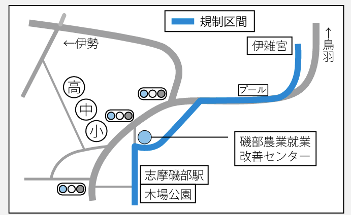 磯部駅周辺の道路通行止めに伴い志摩磯部駅前広場西側駐車場の利用が制限されますのでご注意ください。