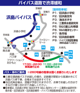 また、臨時駐車場の用意がありますので、現地係員の案内に従ってご来場ください。