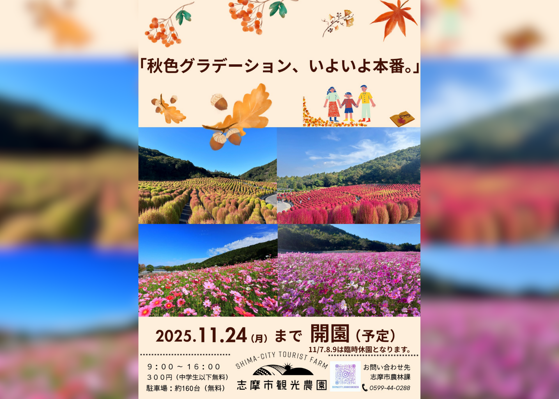 【イベント】コスモス・紅葉コキア開花【志摩市観光農園】