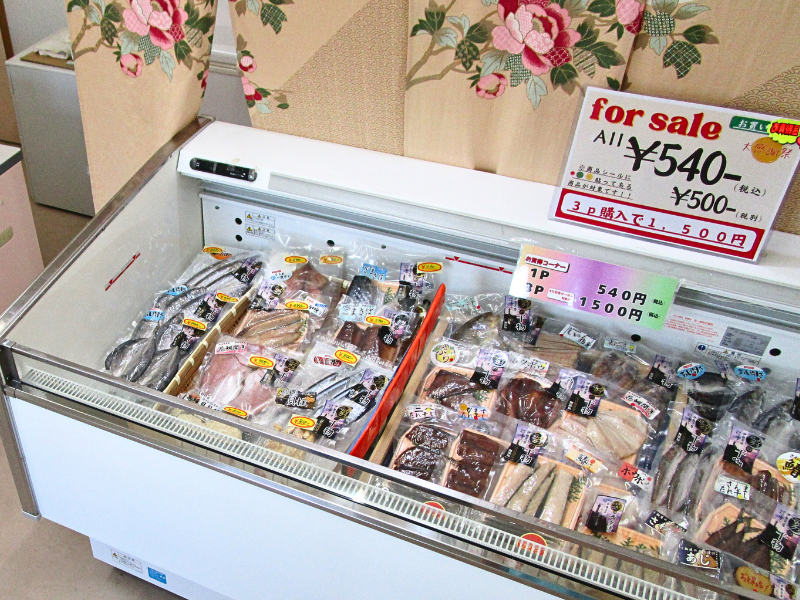 店頭には多彩な干物が並びます。