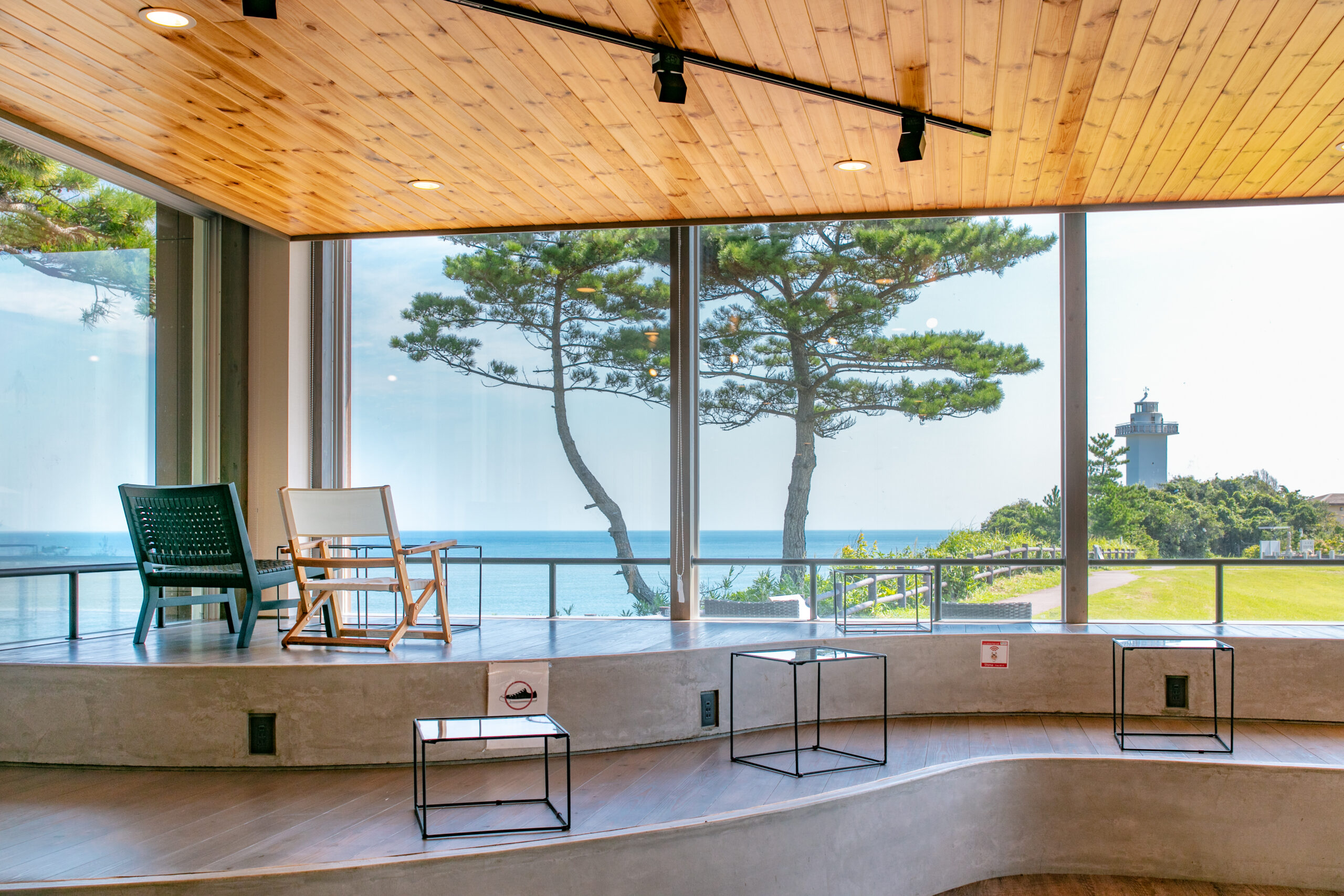 灯台カフェ・・・海と灯台が見えるきれいなスペースでゆったりと至福のひととき。