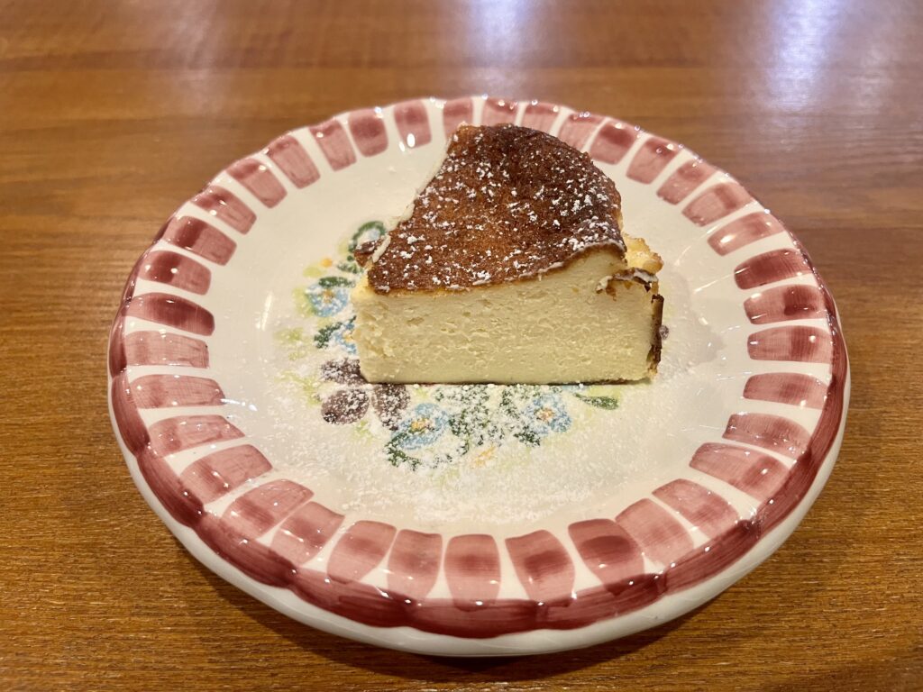シェフ手づくりのバスクチーズケーキ。