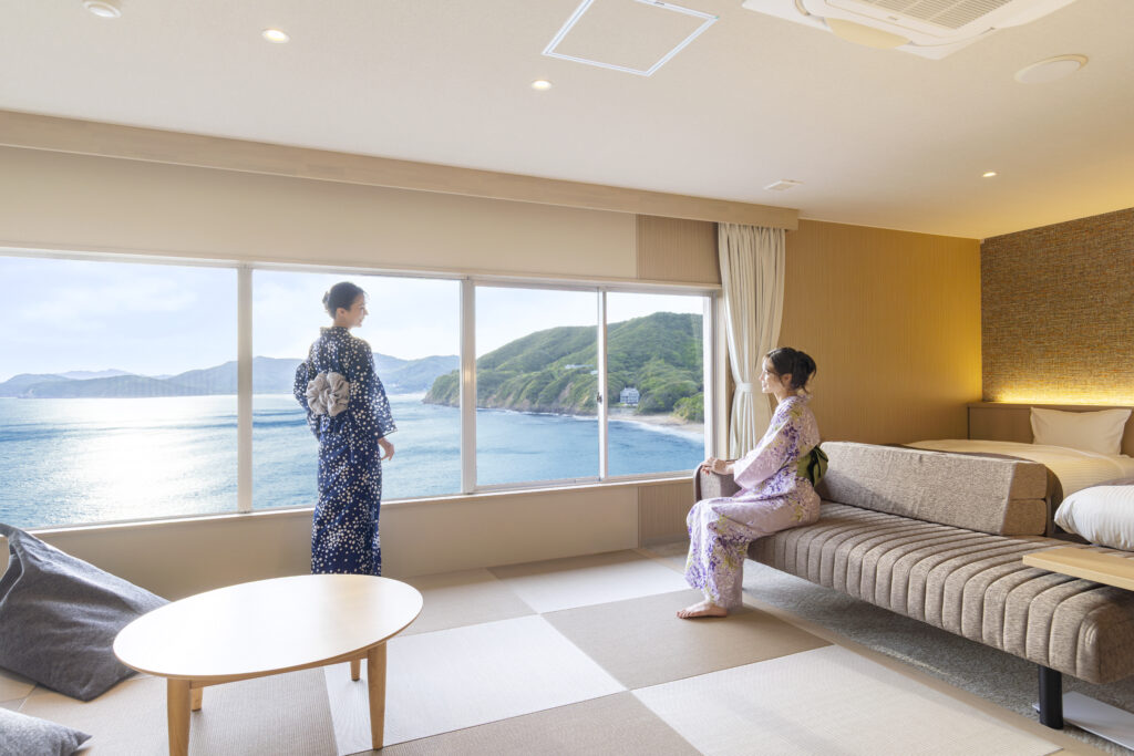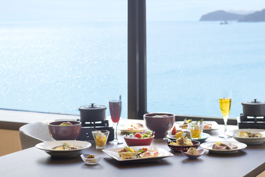 客室は全室オーシャンビューで、その他大浴場やラウンジからも時間帯や季節ごとに変わる風景をお楽しみいただけますので、優雅で贅沢な、非日常のひと時をご堪能ください。