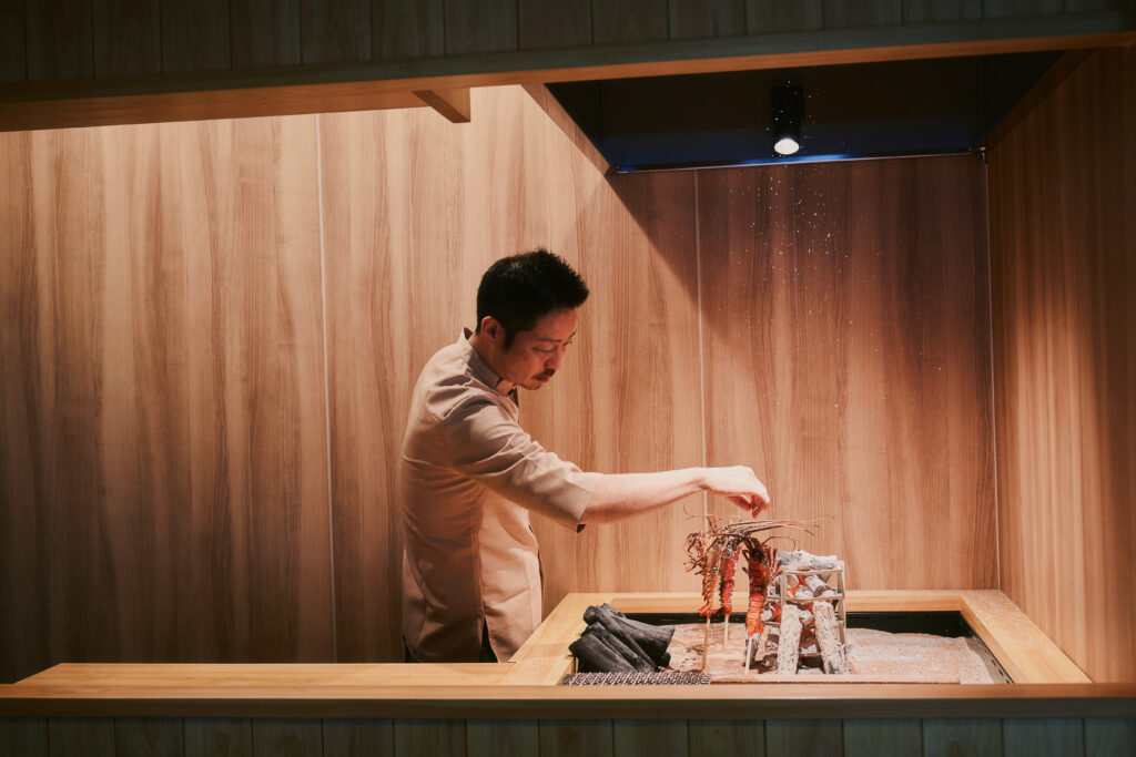 それぞれの食材に適した調理法で仕上げるだけでなく、炭火で焼き上がる過程や香り、音まで含めた“体験”として設計されています。