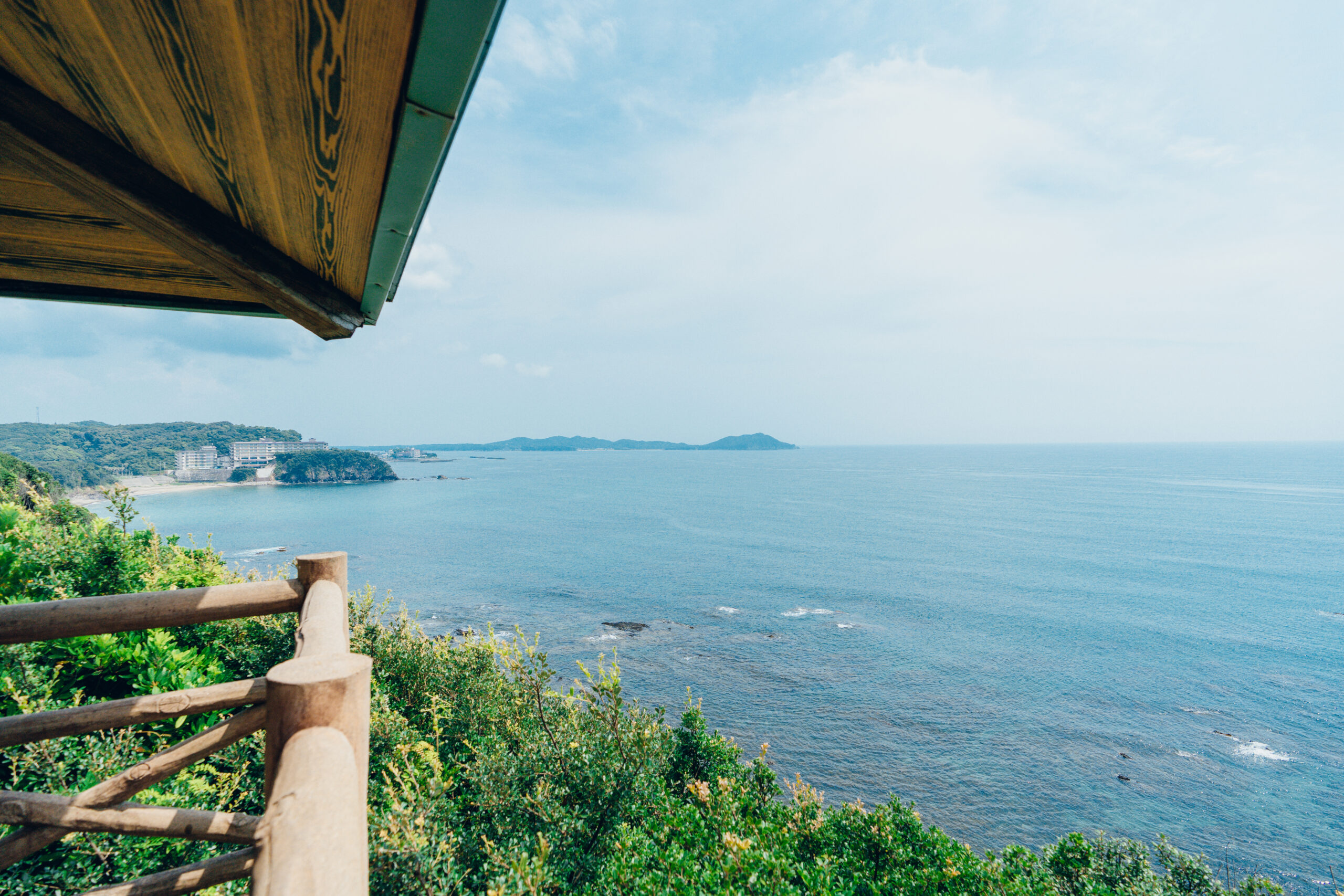 太平洋が一望できる景勝地。好天日の夕景は息を飲む美しさ。海女と漁師の悲恋物語からその名がついたという「ツバスの鐘」は鳴らすと幸運と出世に恵まれるといわれています。更に国道260号線を進むとメロンの産地・南張へと向かいます。