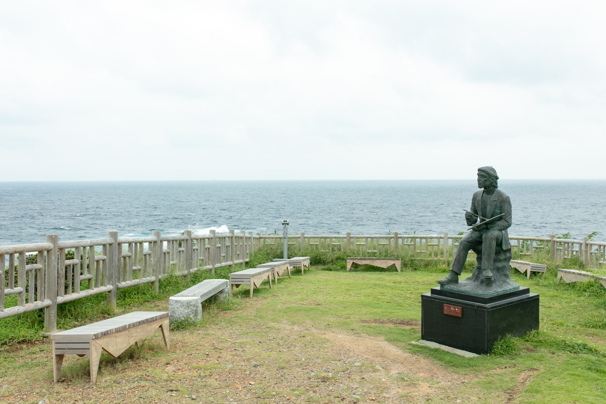大王埼灯台への坂道の途中に小公園があります。公園には銅像があり、古き絵かきの姿と、ここから眺める白亜の灯台・熊野灘と太平洋を一望する眺めが訪れる人に絵を描きたいとの印象を与えてくれます。