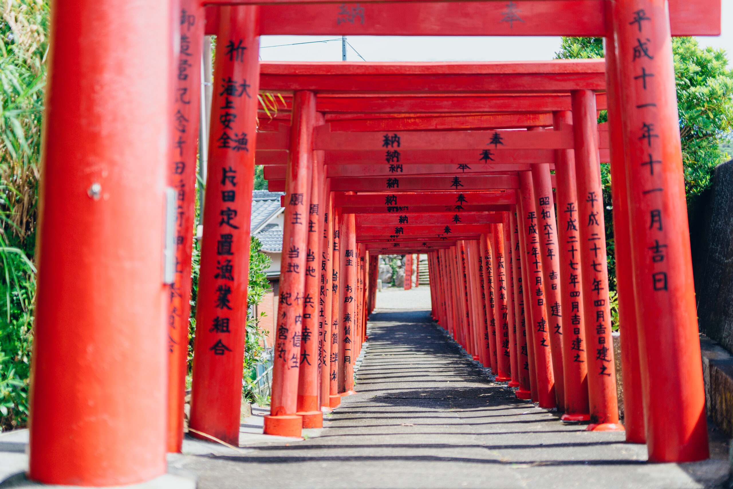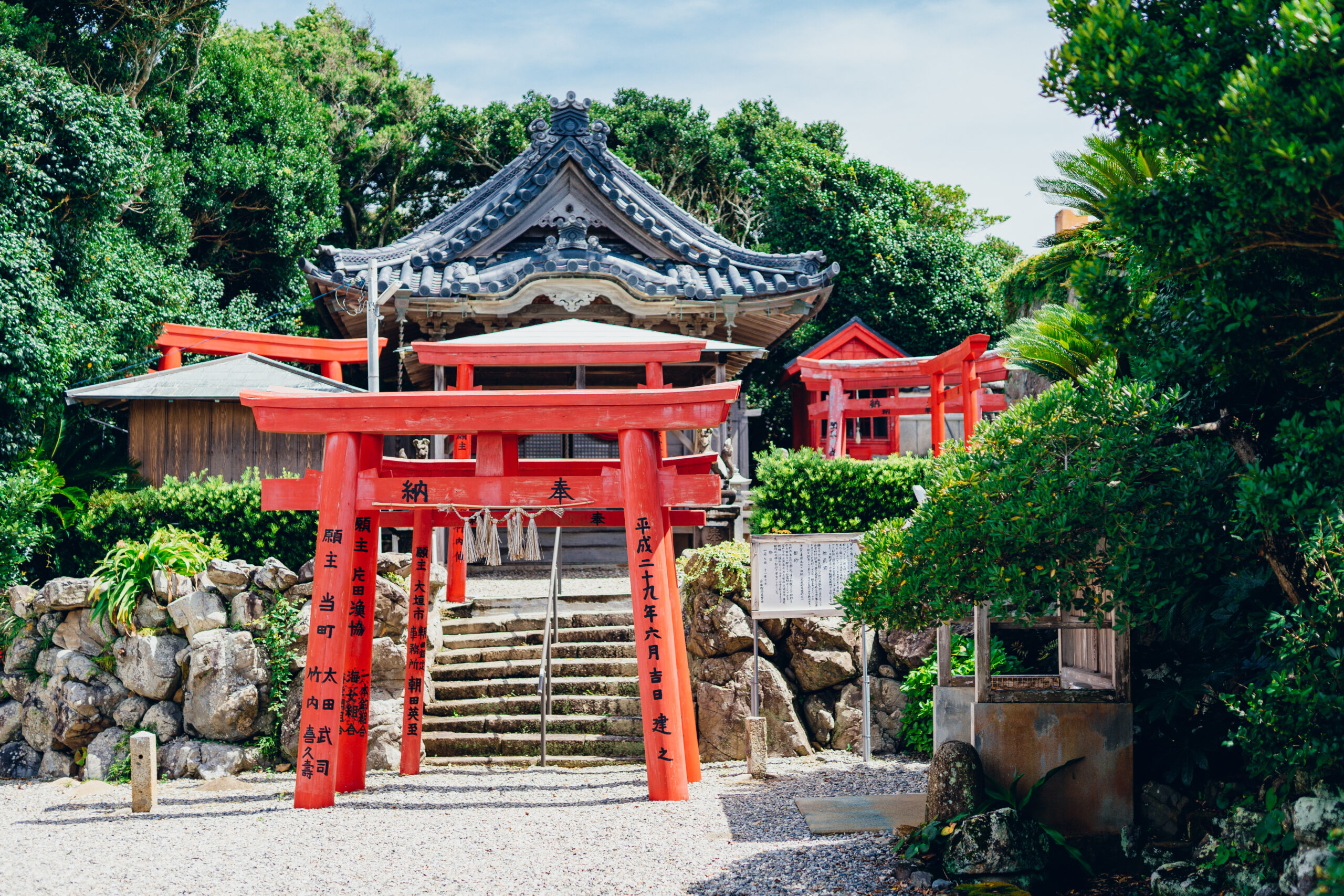 漁業の神として信仰を受ける稲荷神社。野村訥斎とその弟子たちによって描かれた48枚の格子絵天井が有名。